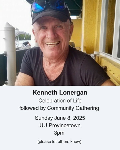 Back to All Events Kenneth Lonergan Celebration of Life Sunday, June 8, 2025 3:00 PM 4:00 PM Unitarian Universalist Meeting House 236 Commercial Street Provincetown, MA, 02657 United States (map) Google Calendar ICS